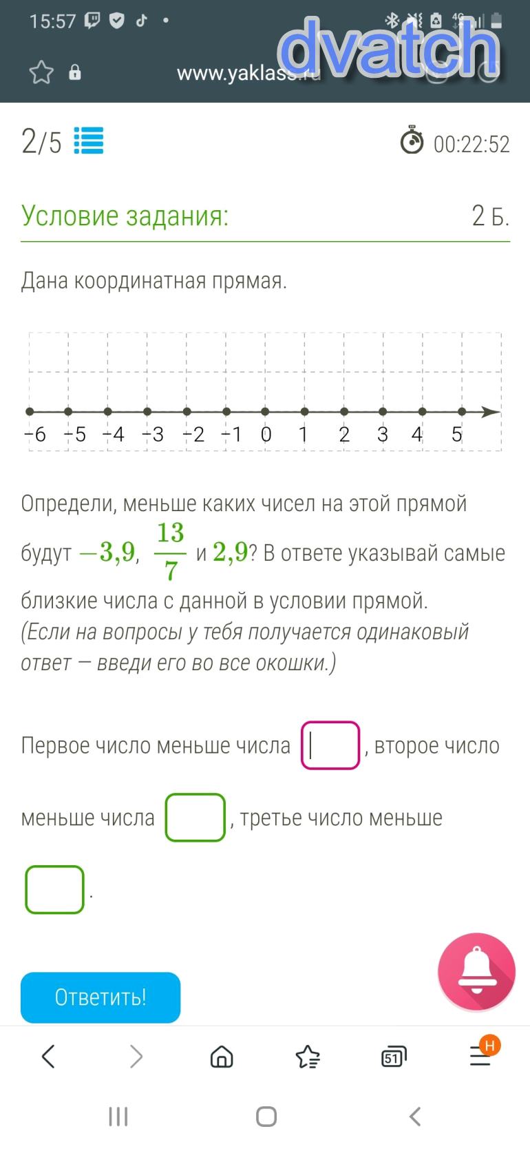 50 поинтов. Определи, меньше каких чисел на этой прямой будут −3,9, 137 и 2,9? В ответе указывай самые близкие числа с данной в условии прямой.