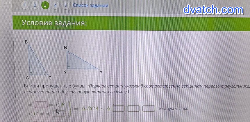 Треугольник ВСА подобен треугольнику КNV по первому признаку подобия треугольников