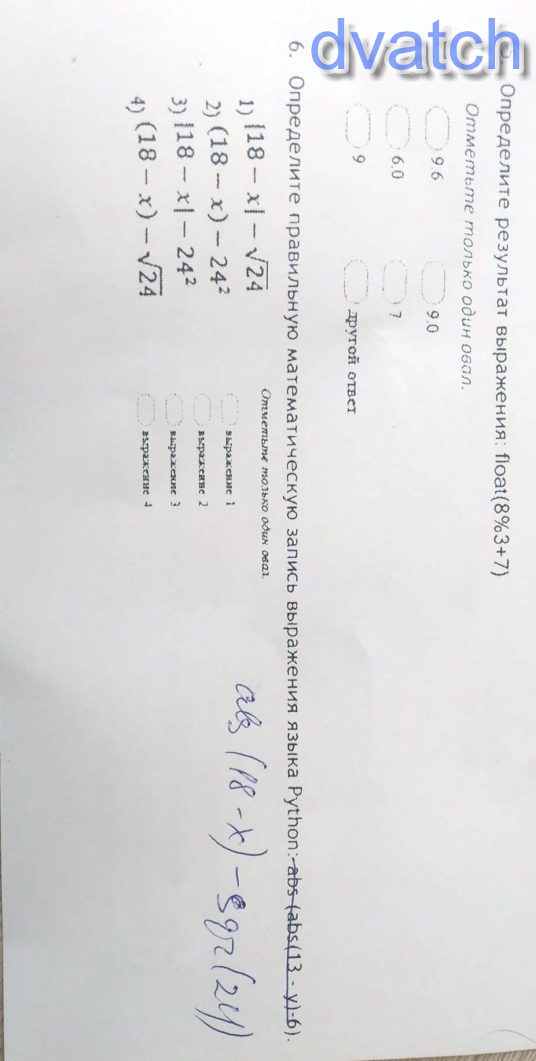 №6. Определение правильную математическую запись выражения языка Pytgon: abs(18 - x) - sqr(24)