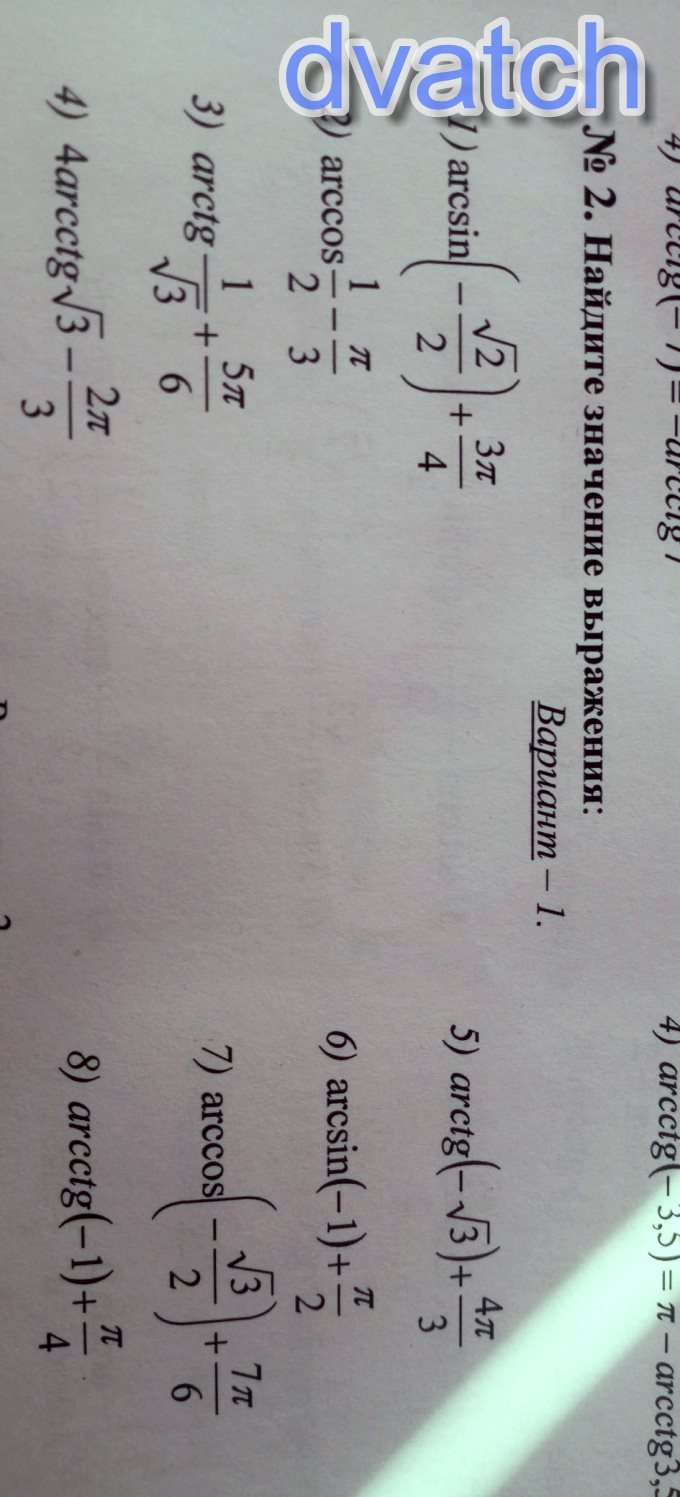 №2 . 1) arcsin(- √2/2) + 3π/4= - arcsin(√2/2)+ 3π/4 = - π/4 +3π/4 = 2π/4=π/2;