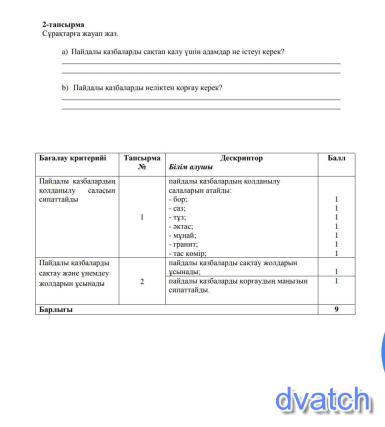 б)Пайдалы қазбаларды тіршілікке пайдасы зор болғандықтан қорғауымыз қажет. Пайдалы қазбаларды үнемдемесек,өзімізге зияны тиеді.