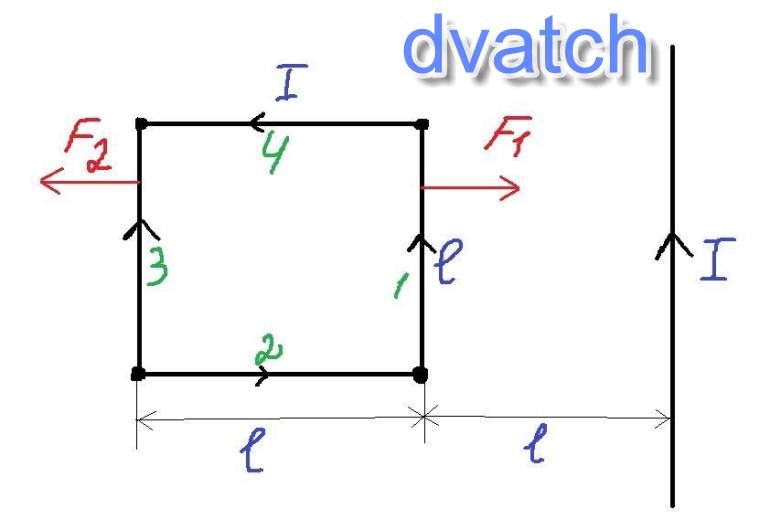 на проводники 1 2 3 4 длиной L действуют силы F = I * B * L
