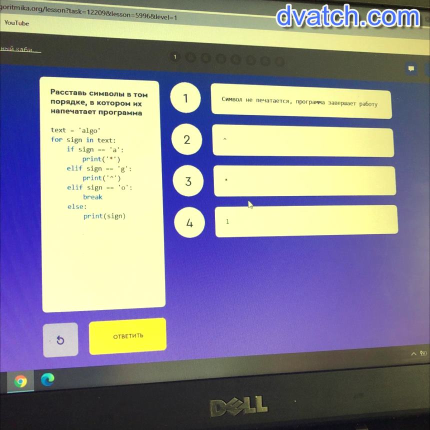 Расставь символы в том порядке, в котором их напечатает программа1. Символ не печатается, программа завершает работу2. ^3. *4. I посчитайте пж, дам 10 поинтов