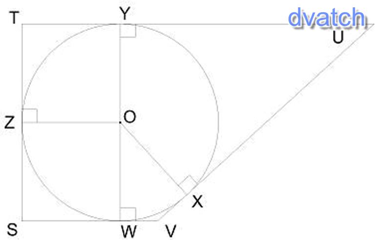На рисунке изображена прямоугольная трапеция, тогда отрезок OZ перпендикулярен прямым:OYUTWYVUTSXO