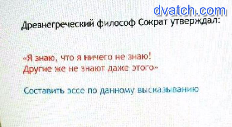 Однако существуют люди, которые думают совсем иначе. Они уверены, что знают все и передают свои знания другим. Сократ, с такими людьми обращался по-своему. Выслушав речь так называемого «мудреца», он расхваливал его, задавал элементарные вопросы, на что собеседник с легкостью отвечал на них. Но ив на последний вопрос, собеседник полностью противоречил своему первому у. Когда тот спрашивал, знает ли он на этот вопрос, то Сократ отвечал – нет.