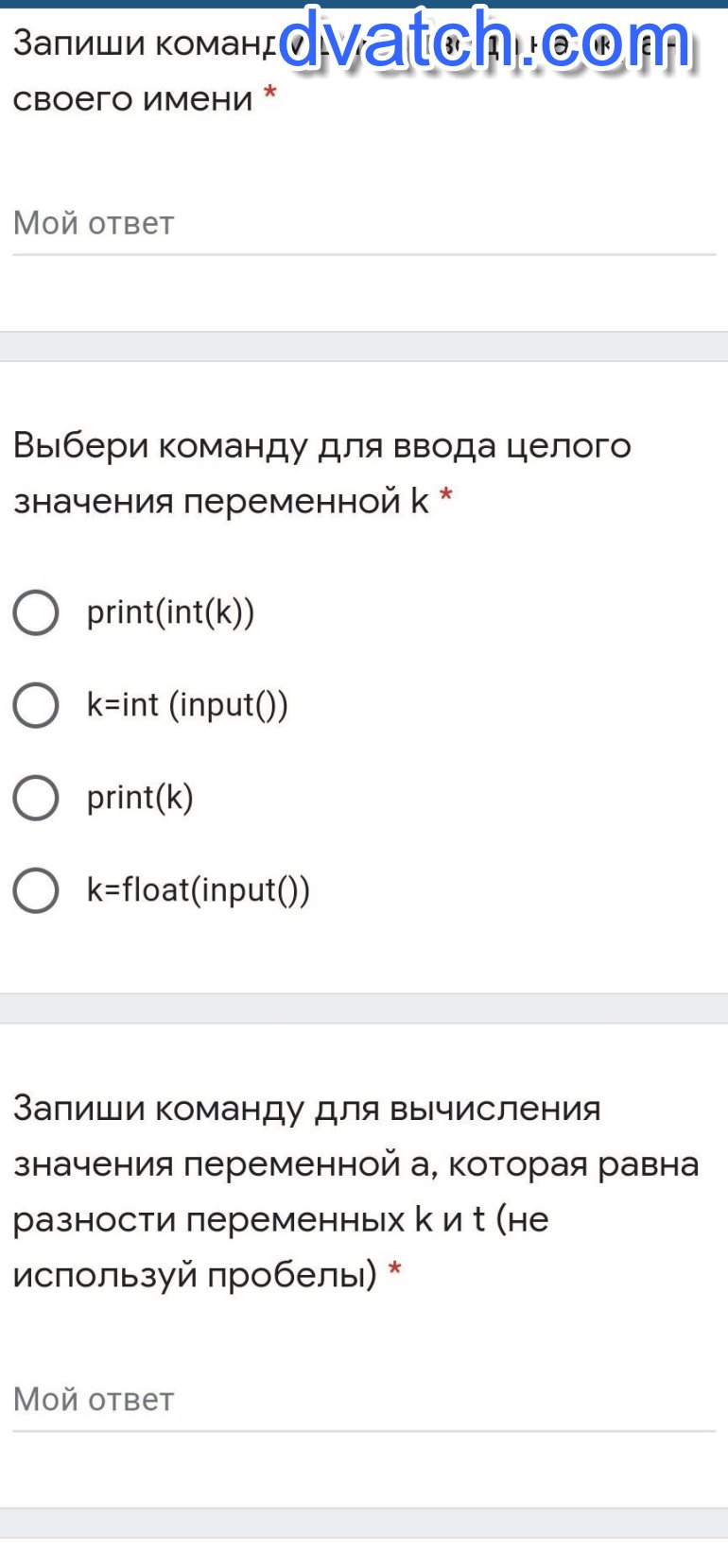 Команда для ввода целого значения: