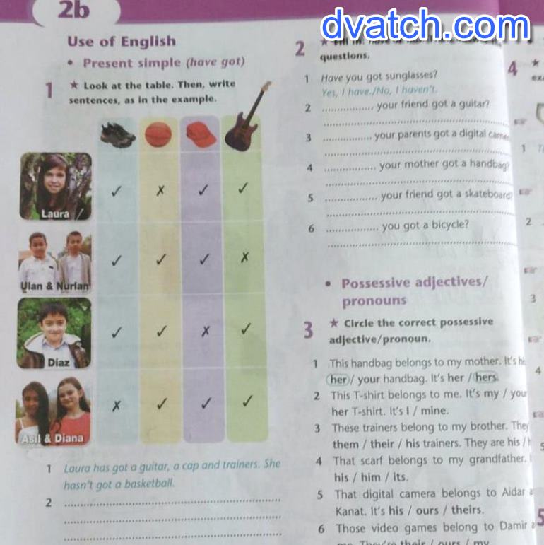 2. Ulan and Nurlan have got a cap, a basketball and trainers. They haven't got a guitar.