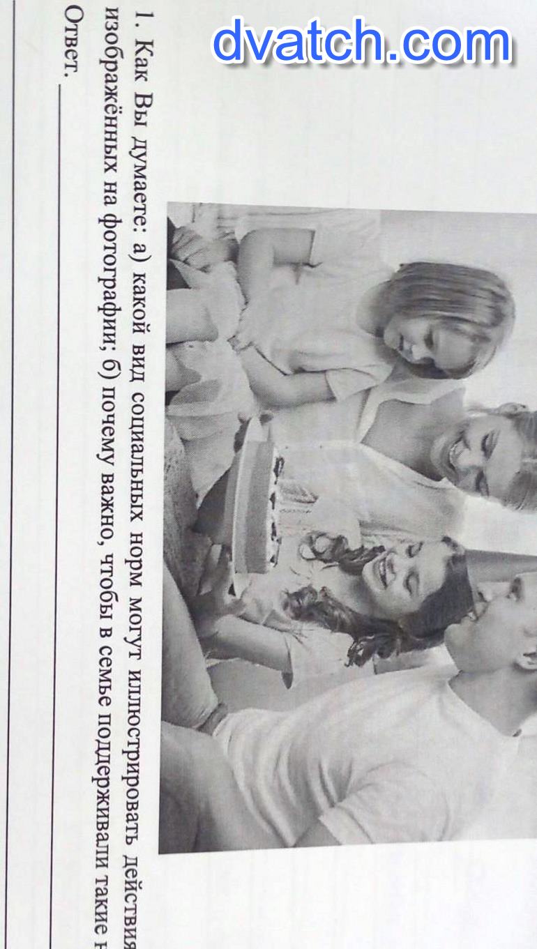 7На фотографии изображены люди. 1. Как Вы думаете: а) какой вид социальных норм могут иллюстрировать действия людей,изображённых на фотографии; б) почему важно, чтобы в семье поддерживали такие нормы?Ответ.