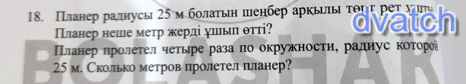 С= 2 * 3,14 * 25 =157 м длина одной окружности, а так как планер пролетел 4 раза получим