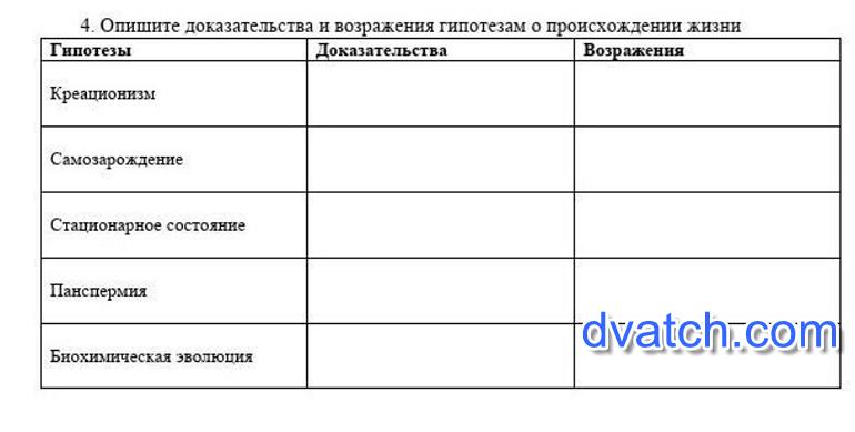 1) Гипотеза креационизма - жизнь создана сверхъестественным существом (бог, космический разум и т. п. )