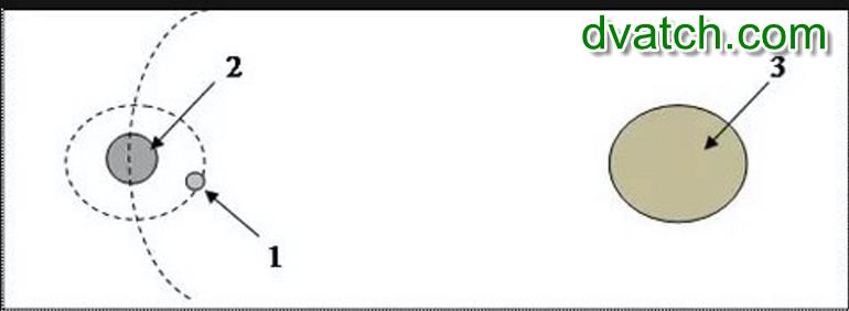 Земля – одна из планет Солнечной системы, а Луна – спутник Земли. На схеме показаны эти небесные тела и участки их орбит. Определи, где на схеме Солнце, Земля и Луна. Запиши в ответе названия небесных тел рядом с соответствующей цифрой. Ответ 1 – ______________, Ответ 2 – ______________, Ответ 3 – ______________ .