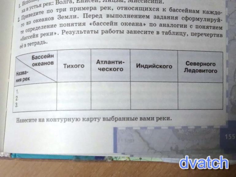 2. Бассейн Атлантического океана: Дон, Днепр, Темза, Нил, Миссисипи, Амазонка.