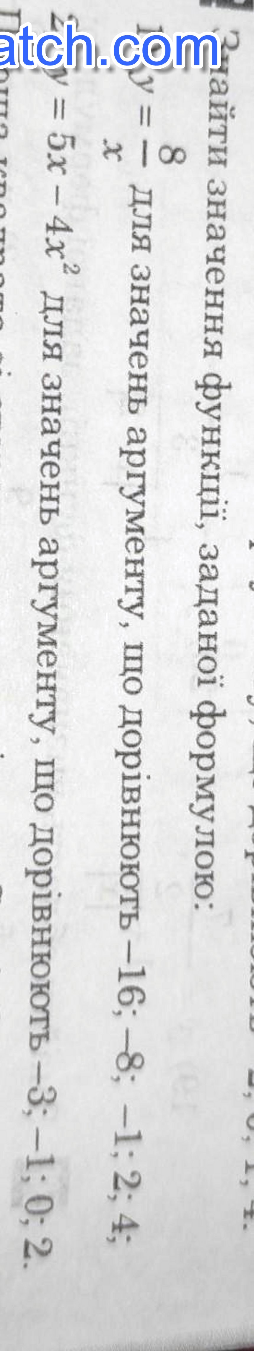 просто подставляете в формулу вместо х данные числа. например. при х=-16 получите у(-16)==8/(-16)=-1/2;