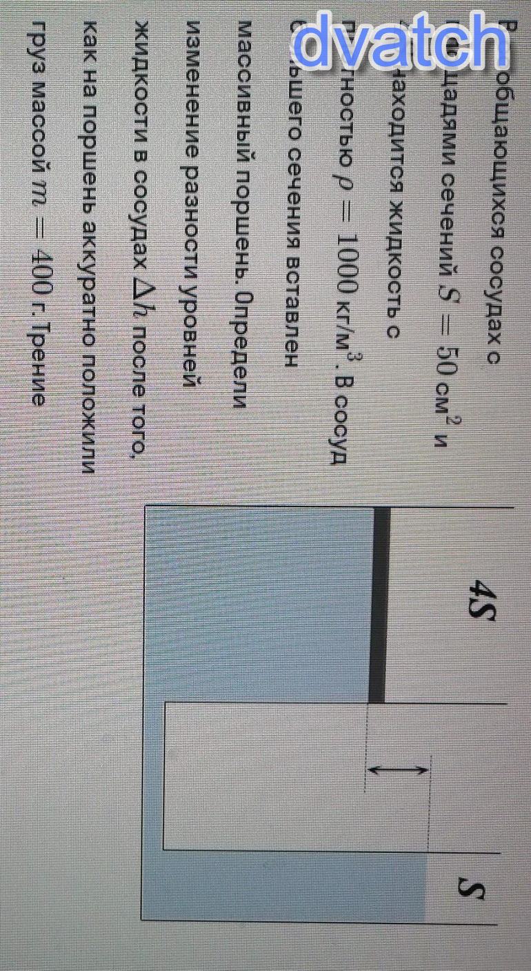 p₂ = P / S₂ = ρ·g·Δh = 1000·10·Δh = 10 000·Δh Па (2)