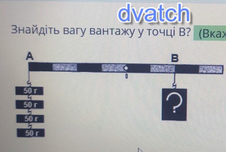 Смотри, у нас есть центр этой палки, он позначен белым кружком, слева от него 4 деления и 200грамм, а справа груз находиться на втором делении, значит каждое деление равно 50грамм, а груз справа на втором делении находится, значит его масса 100 грам