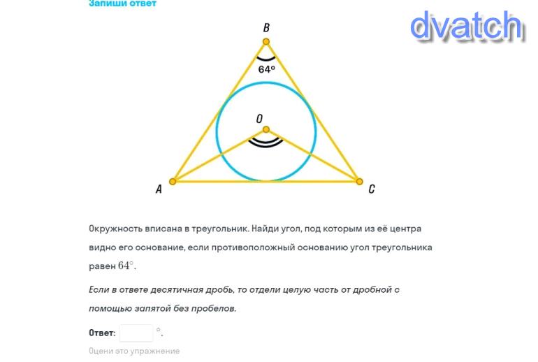 Угол АОС = 180 - (А/2) -(С/2) = 180 - (А + С)/2 = 180 - (116/2) = 122°.