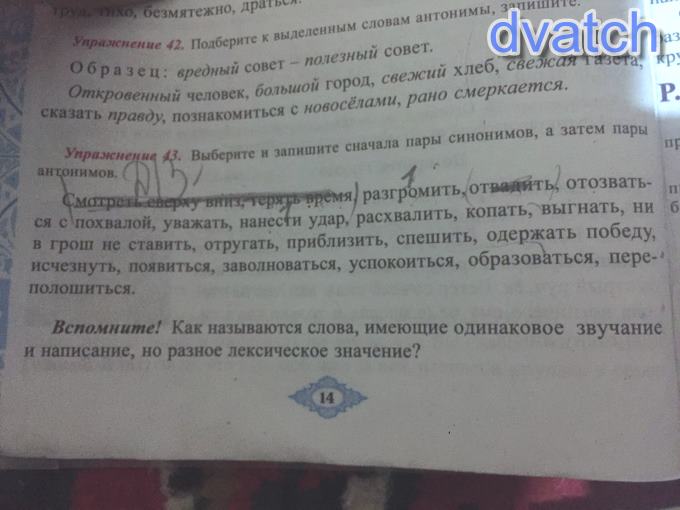 Пары антонимов: