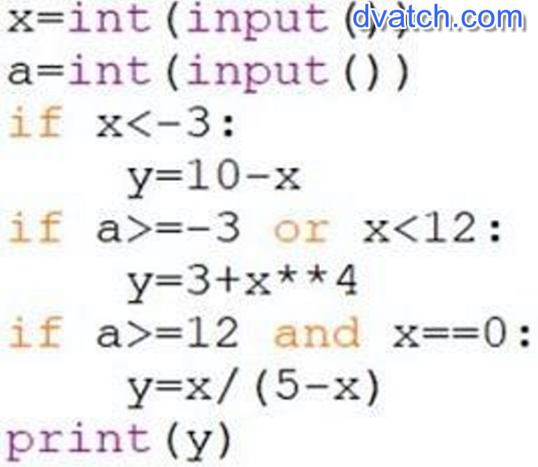 если a > 12 и x == 0 то: y = x / (5 - x)