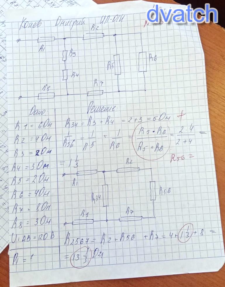 I=U/Rобщ= 120/. . . =. . . А =I1