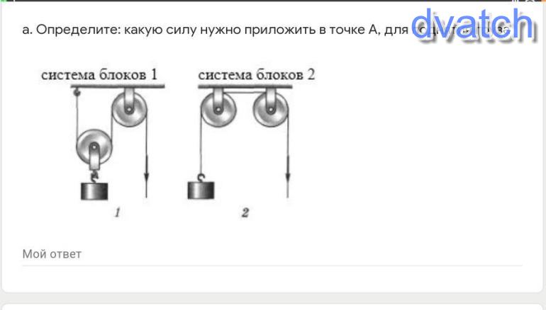 Строители, для поднятия одного и того же груза весом 446 Н использовали две системы с блоками:а. Определите: какую силу нужно приложить в точке А, для поднятия грузаПодпись отсутствуетб. какую силу нужно приложить в точке В, для поднятия того же грузав. какая из систем блоков «сэкономила» силы строителей