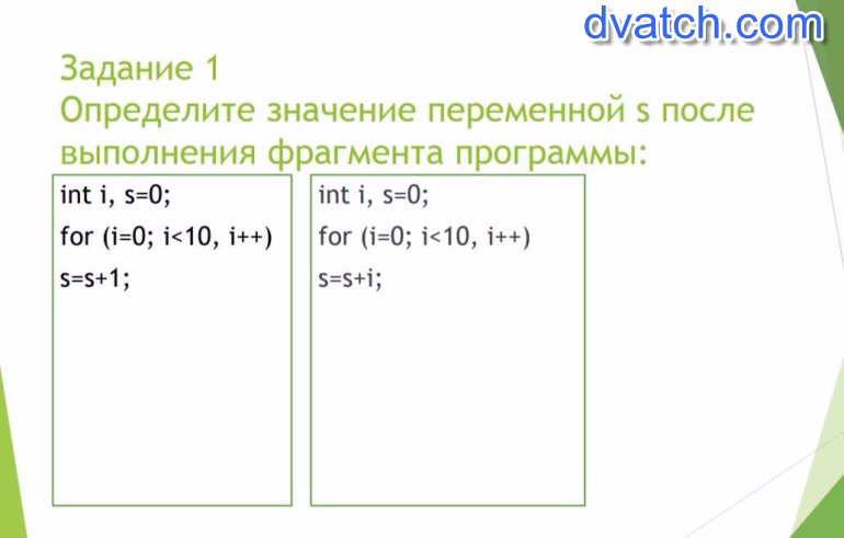 Вторая программа каждый проход цикла прибавляет i (счетчик), шаг 1, идем до 9.