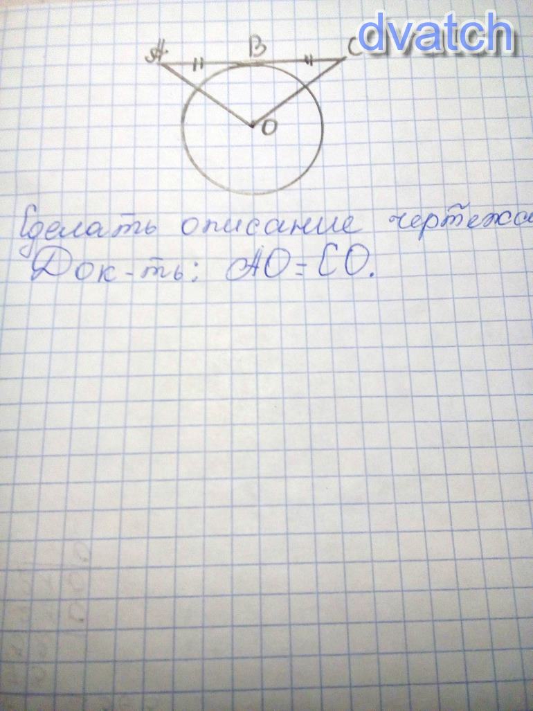 Проведём радиус ОВ. Радиус с точкой касания образуют прямой угол =90°. ВО делит ∆АОС на 2 прямоугольных треугольника АОВ и СОВ. Рассмотрим эти треугольники: