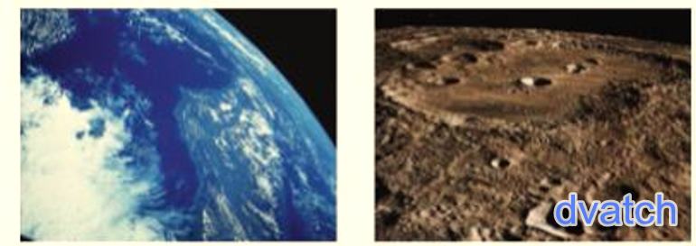Поверхность Земли-есть живая жизнь,а поверхность Луны-без жизни.