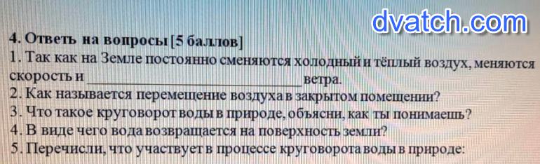 5. Состоит из испарения воды, переноса паров воздушными течениями, , выпадения в виде осадков (дождь, снег и т. д. ) и переноса воды реками и другими водоёмами