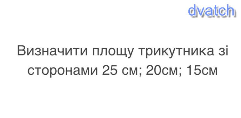 S=корень квадратный из 30*(30-25)*(30-20)*(30-15)= корень квадратный из 30*5*10*15=150 см в квадрате
