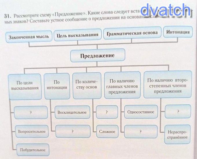 восклицательное, вопросительное, простое, многосоставное, распространённое