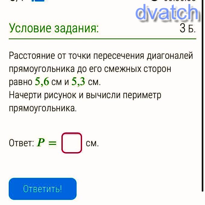 b=5,3(см)•2=10. 6(см) - находим сторону b
