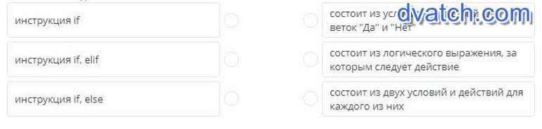 Инструкция if, elif - состоит из двух условий и действий для каждого из них
